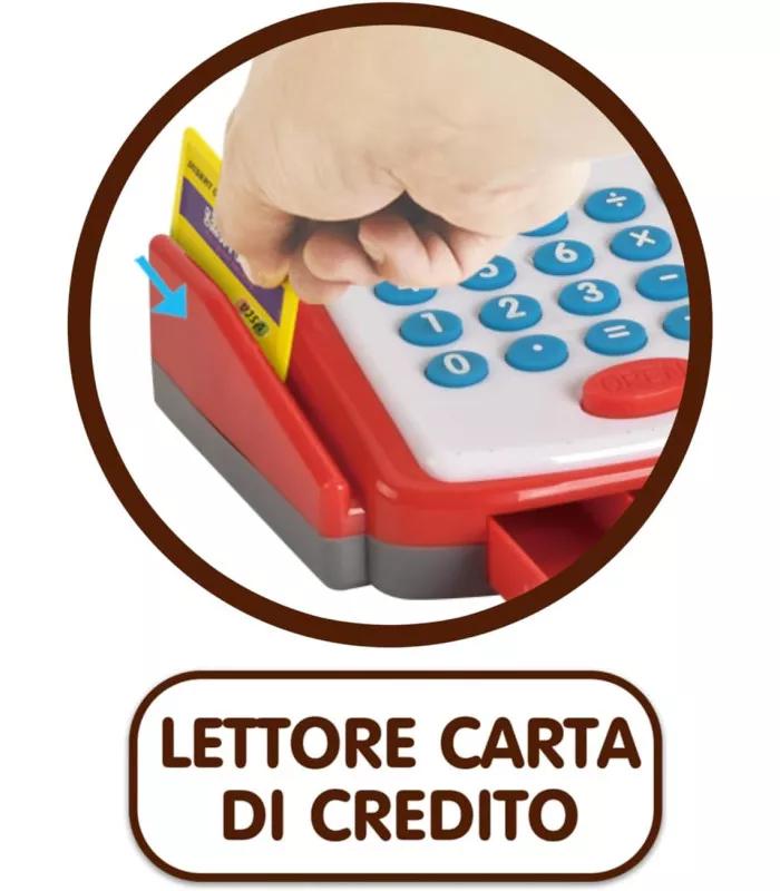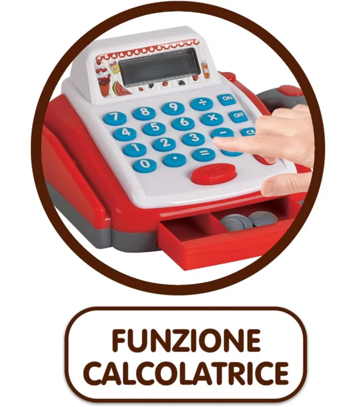 - 💶 Include cassetto portamonete, tasti calcolatrice e microfono per giocare al supermercato
