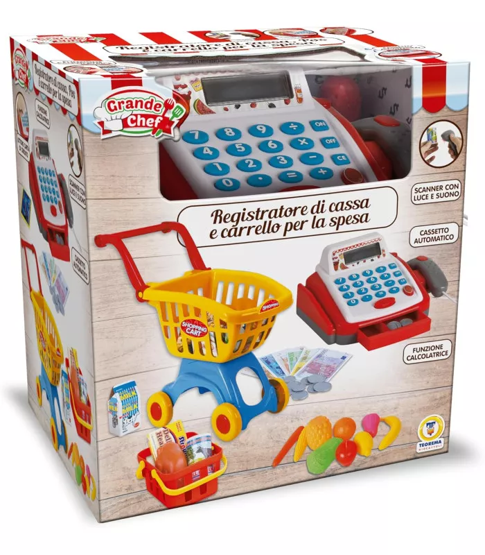 Cassa Giocattolo con Carrello Spesa Grande Chef Teorema Set Supermercato con Luci, Suoni, Scanner e Soldi Finti per Bambini