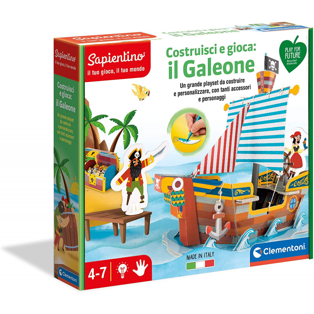 - Contiene diversi elementi di cartoncino sagomati da assemblare per creare un bellissimo galeone in 3D. Anche i personaggi sono da costruire attraverso un facile assemblaggio. Un gioco eco friendly ideale a partire dai 5 anni. Made in Italy.