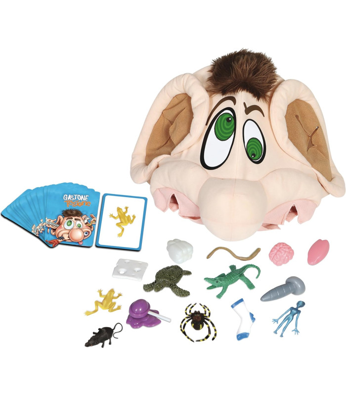 Trascorri un pomeriggio all'insegna delle schifezze mettendo la mano nella testa di Gastone Testone! Ricerca all'interno della sua testa e cerca di trovare l'oggetto corrispondente alla carta che hai pescato! Fai attenzione a quello che estrai! Possono giocare un massimo di 4 amici... Sei pronto a divertirti alla grande con Gastone Testone?