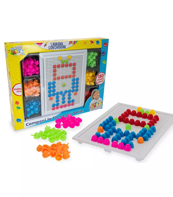 Lavagna con Chiodini Colorati 180 Pezzi Gioco Creativo Educativo per Bambini 3+ Anni, Plasti Art Teorema